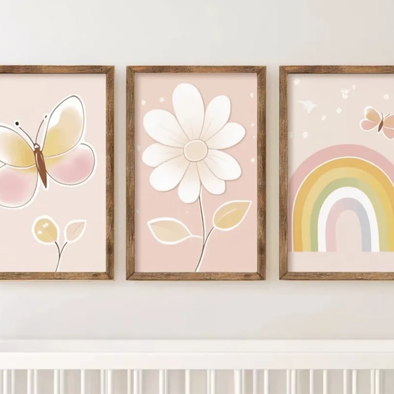 Kit com 3 quadros decorativos para quarto infantil - Arco Iris